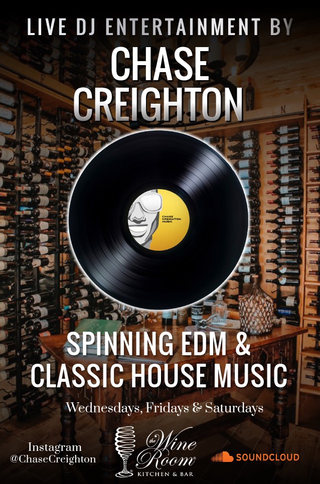 Chase Creighton is a DJ/Music producer in the Electronic music industry. He is currently the resident DJ at The Wine Room on Atlantic Ave in Delray Beach Florida. He plays live music there Wednesday from 8:00PM-Midnight, Friday from 9:00PM-1:00AM, and Saturday from 9:00PM-1:00AM every week.